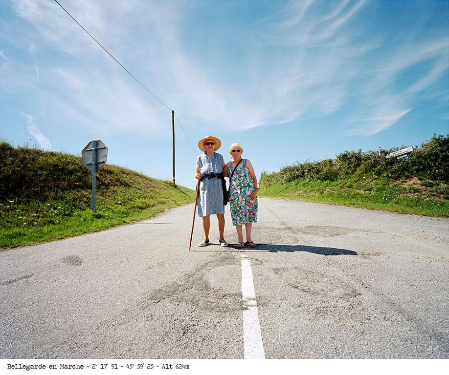 L’ensemble du travail est réalisé au moyen format selon un protocole établi. Rouler et photographier chaque jour, quelle que soit l’envie, l’inspiration, comme un travail répétitif. Une seule prise de vue à chaque fois, réalisée sur trépied. Des prises de vue frontales, des personnages photographiés de face, comme s’ils étaient spectateurs du vélo qui passe, sans aucune mise en scène, un peu comme une photo de famille. Les hommes et les femmes dans leur environnement, avec un plan large, beaucoup de vide autour, comme si malgré les facilités de communications, nous étions condamnés à la solitude.
