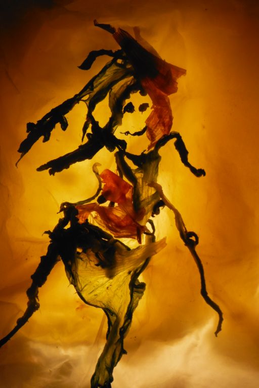 Je vous présente une série de photos que j’ai taillées, sculptées, mises en forme en utilisant des ingrédients éphémères et surprenants : les serviettes de papier se font Chaperon Rouge, Alice au Pays des Merveilles. Les feuilles de laitue se transforment en princesses, en prêtresses africaines, les feuilles de poireaux en tableaux abstraits, les feuilles de plastique forment un décor féérique, les pelures d’ail et d’oignons un jardin d’Éden où il fait bon se perdre.